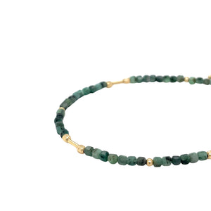 Ben je op zoek naar een mooie subtiele, maar net even anders dan anders armband? Kies dan voor deze prachtige vierkante blauwe apatiet kralen armband afgewerkt met gouden goldfilled kralen van Pat’s Jewels. Deze handgemaakte armband is door de kleine gouden buis kraaltjes weer net even anders dan anders.
